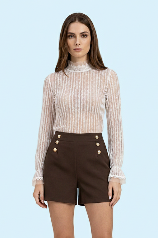 Lasciati avvolgere dall'eleganza senza tempo della blusa MORGANA in pizzo trasparente. È il capo perfetto per chi desidera unire un'anima romantica a un carattere deciso, creando un look che non passa mai inosservato: indossala con un denim a vita alta per un contrasto moderno e grintoso, oppure con una gonna a tubino per le tue occasioni più eleganti!