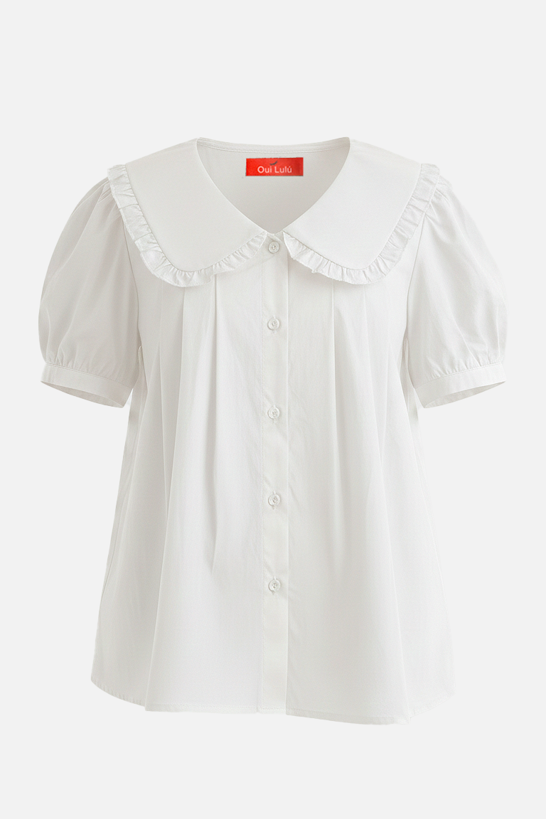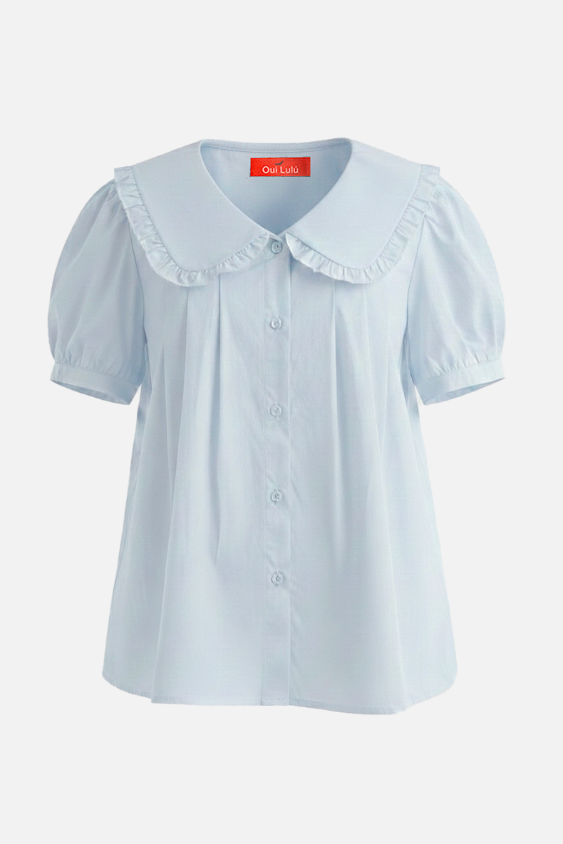 Fresca, vaporosa, irresistibile.La camicia OLIVIA rivisita lo stile classico con dettagli sbarazzini che fanno la differenza. Il colletto a bavero con ruches e le maniche a sbuffo donano subito un'aria curata e "preppy". Grazie al taglio morbido con pieghe frontali, scivola sulla silhouette regalando comfort e libertà di movimento.Perfetta per l'ufficio, deliziosa per il tempo libero!
