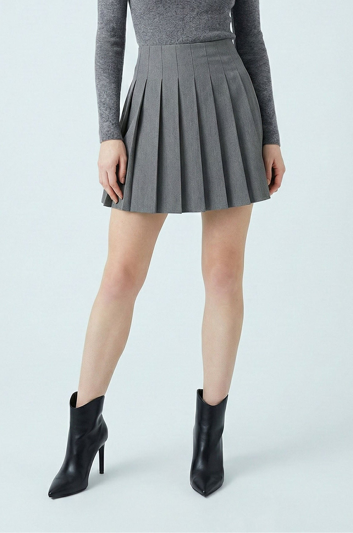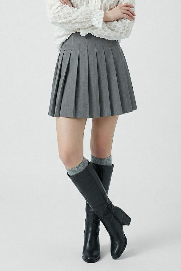 Lasciati conquistare dal fascino intramontabile dello stile college, reinterpretato in chiave moderna.La gonna GRACE in tessuto grigio sartoriale è un capolavoro di struttura e movimento:le ampie pieghe definiscono la silhouette con un rigore elegante, che si scioglie in un gioco sbarazzino ad ogni passo,perfetta per chi ama sentirsi in ordine ma con grinta!