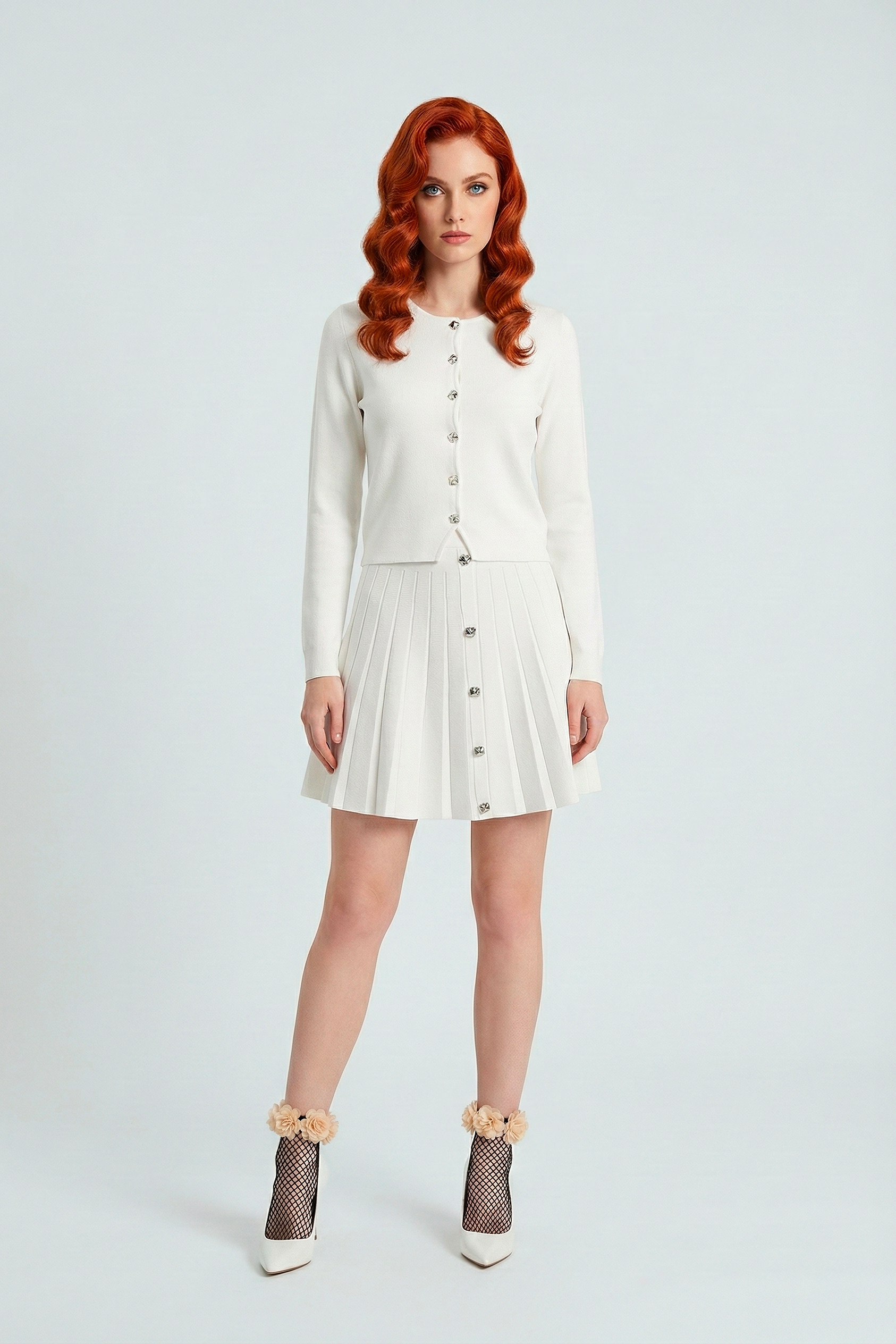 Gonna CHERYN con pieghe e bottoni argento