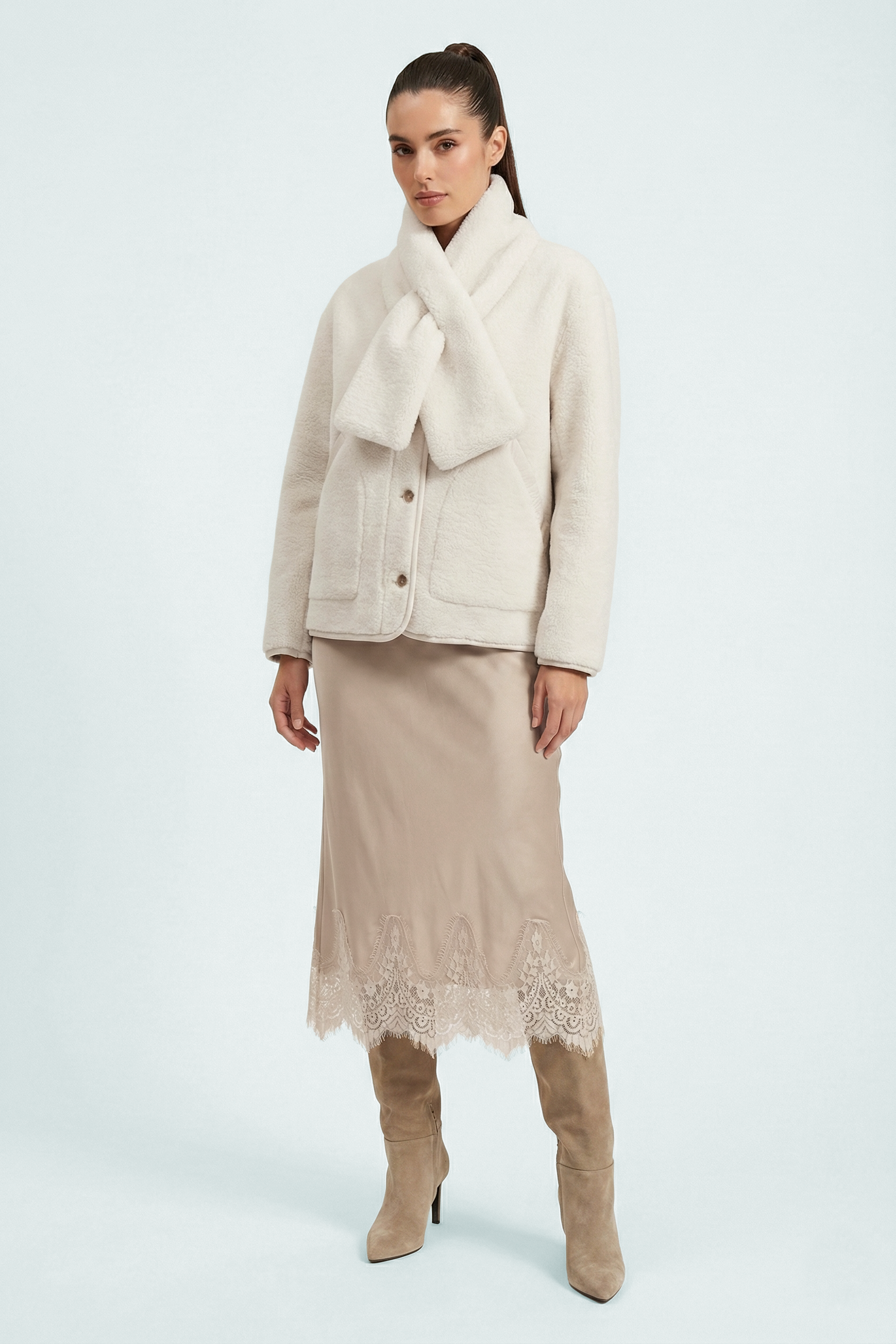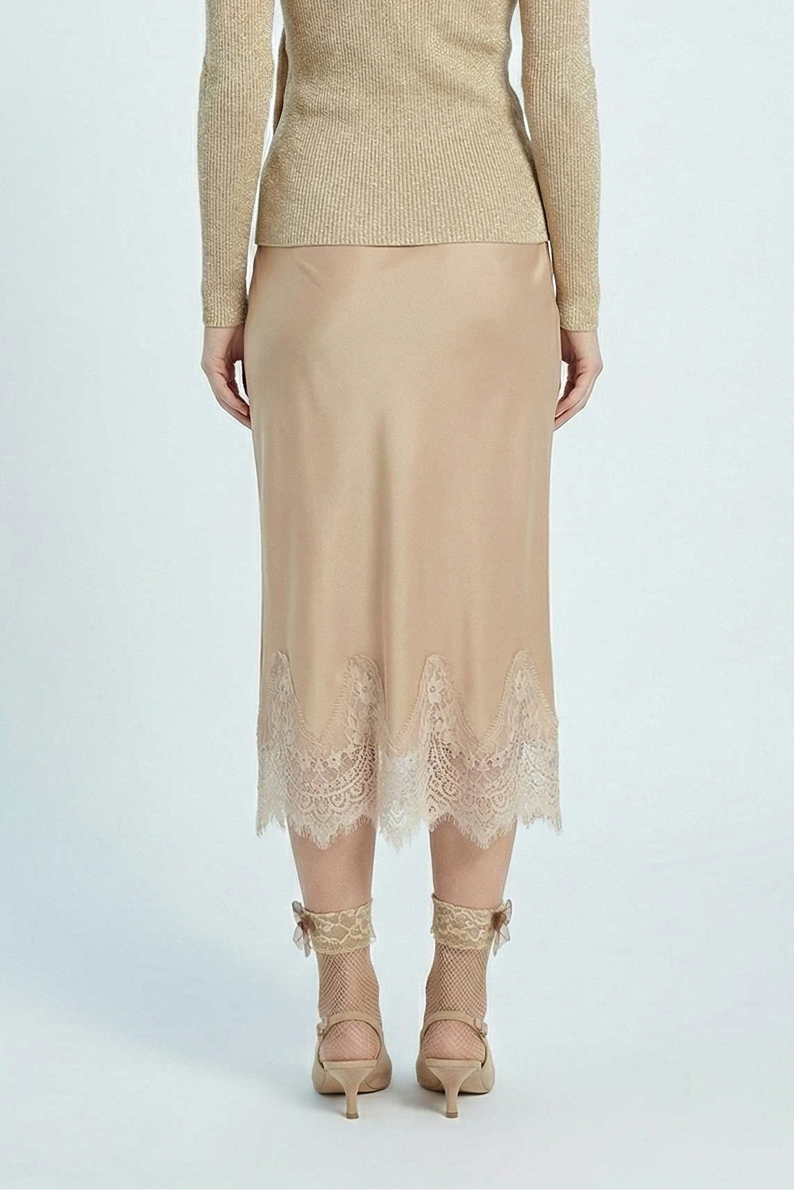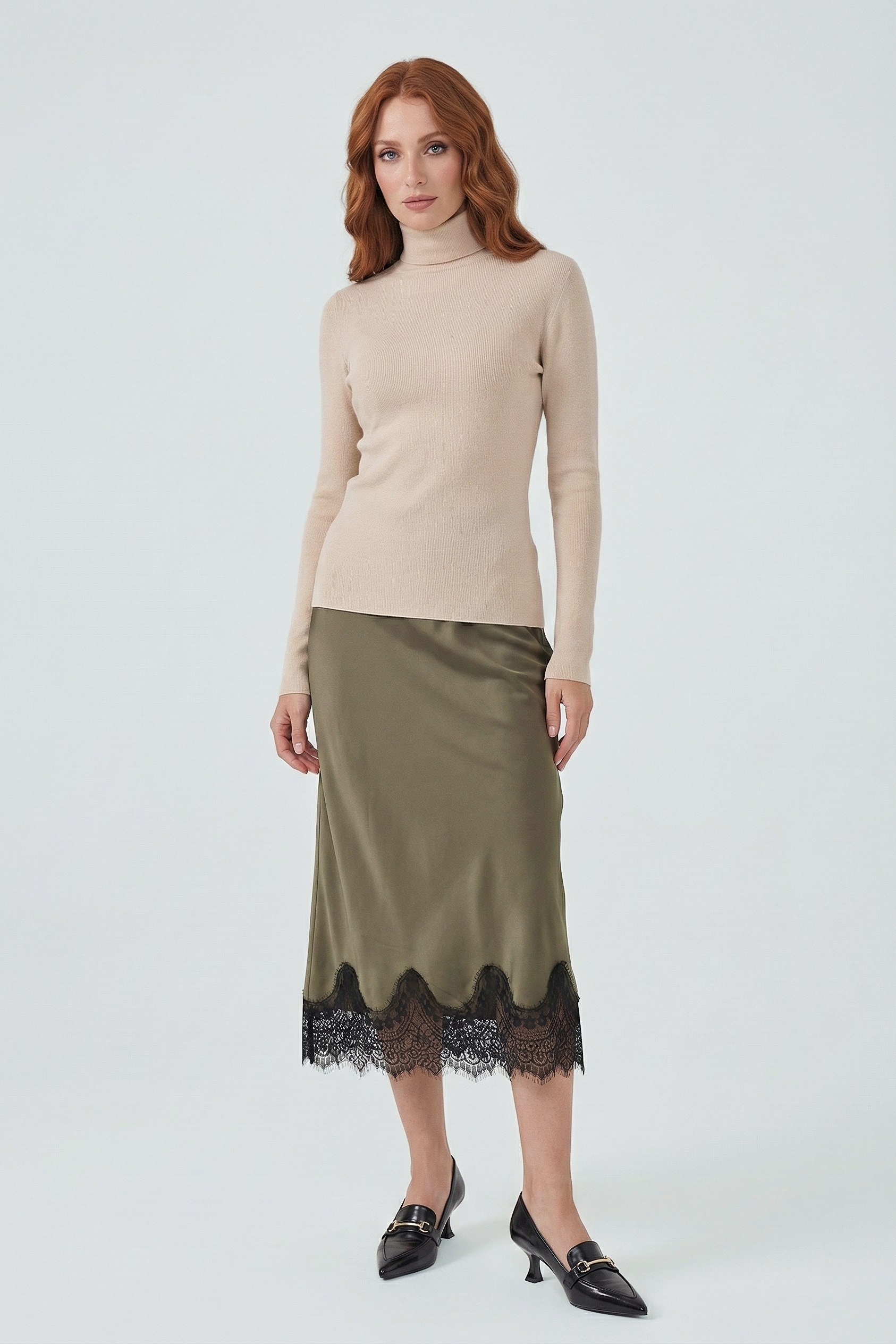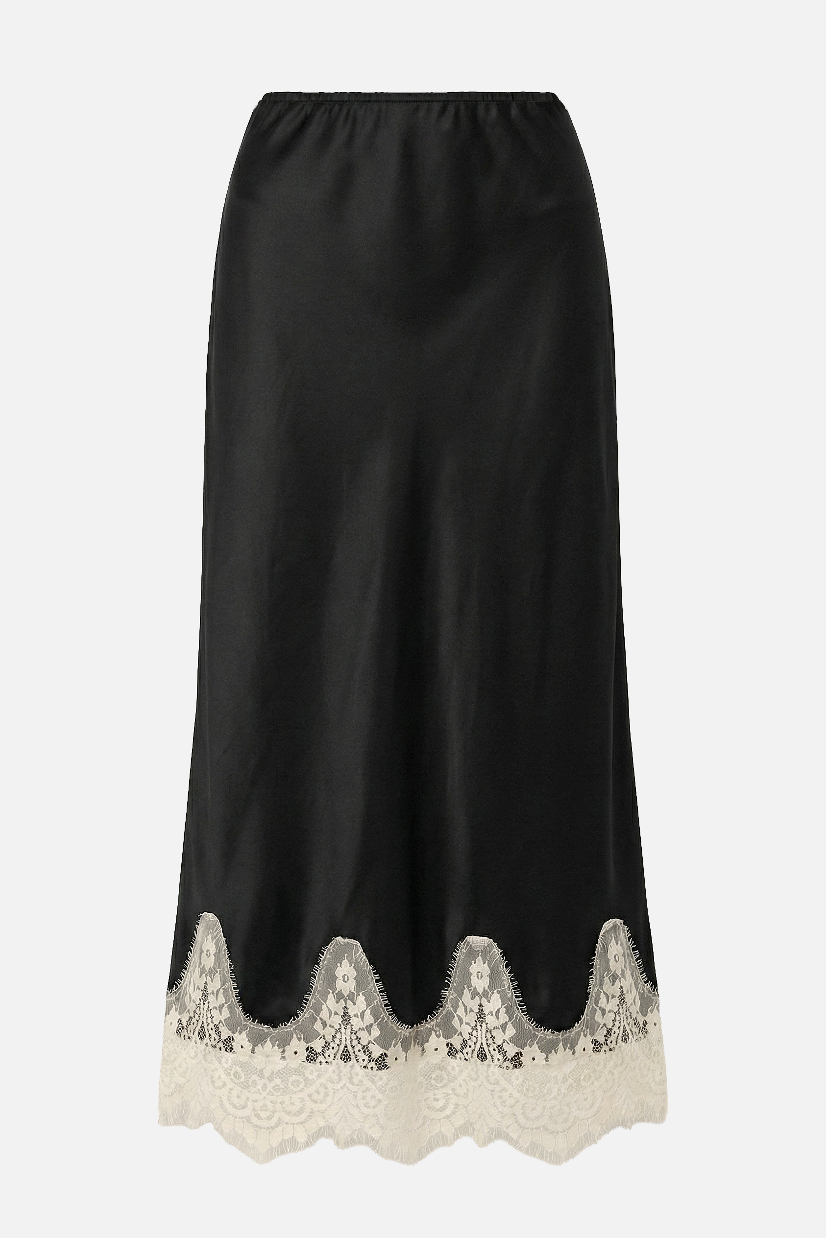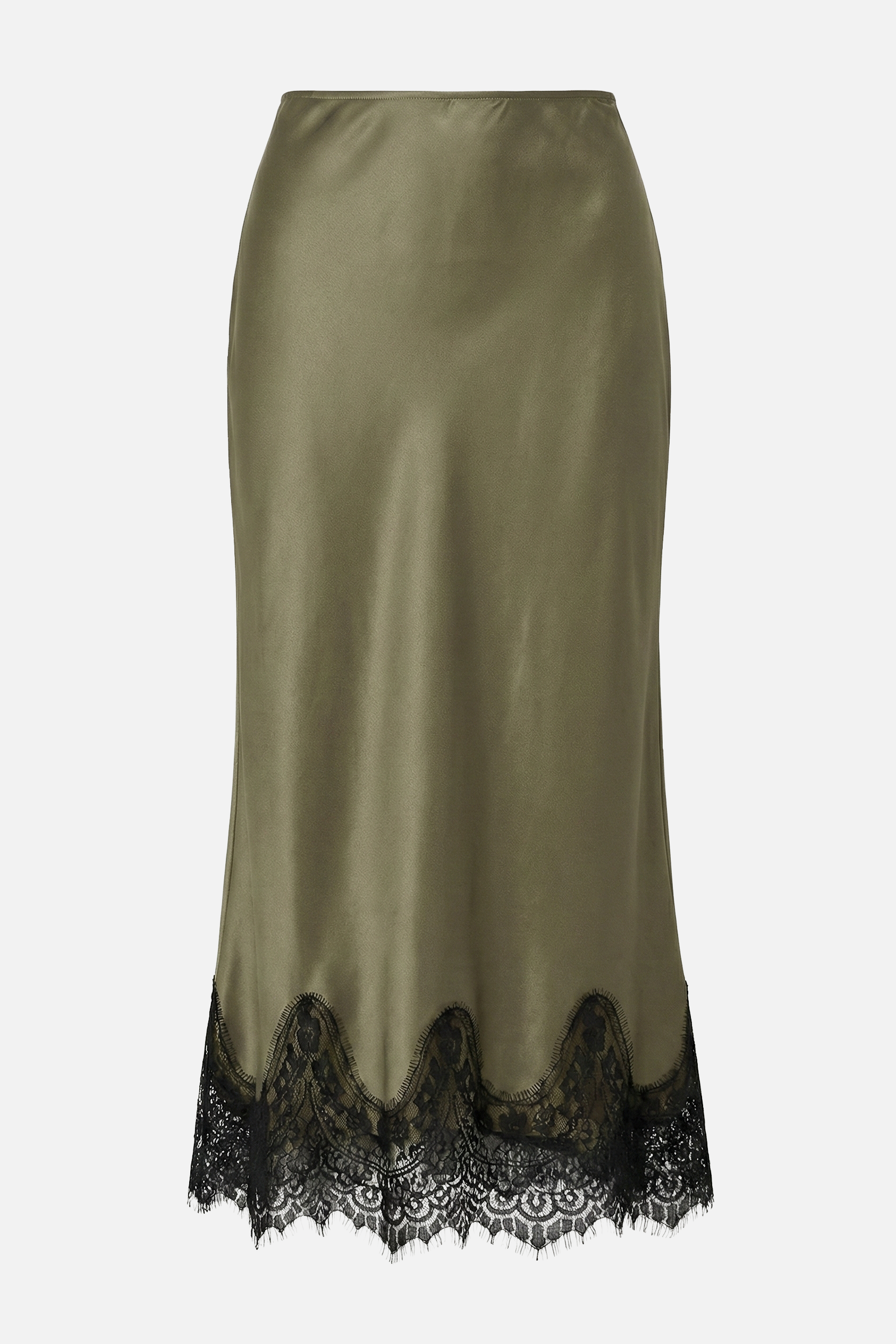 Gonna midi VERSAILLES in satin viscosa,realizzata impiegando il tessuto tagliandolo in tralice permettendo un maggiore confort e vestibilità. Il pizzo sul fondo le dà un tocco di eleganza raffinata, rendendola un must have adatta per tutte le stagioni. Facile da abbinare, con maglione e t-shirt per un look più casuale, oppure con una blusa o giacca per un look più elegante. Il girovita è elasticizzato per un maggiore fit.