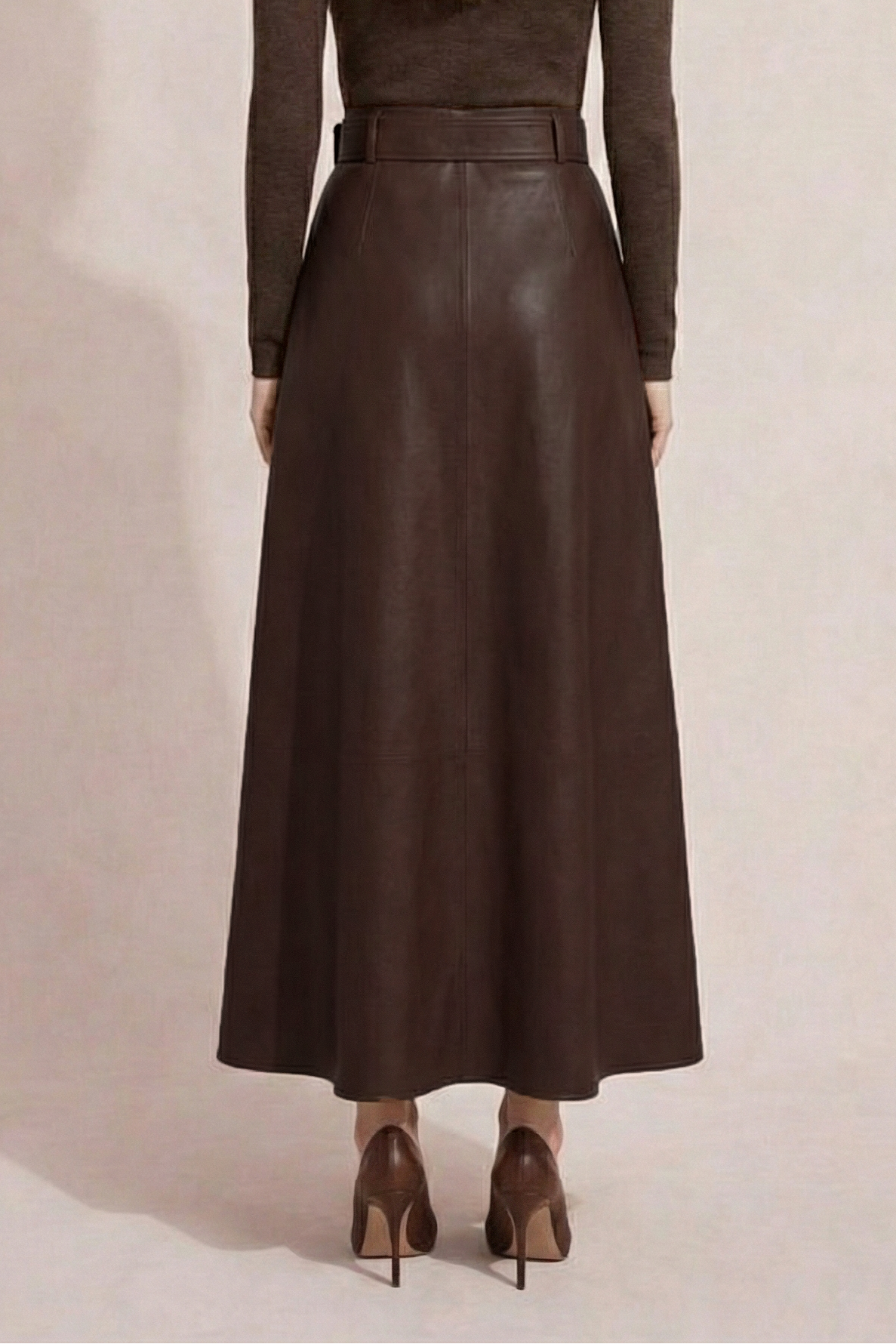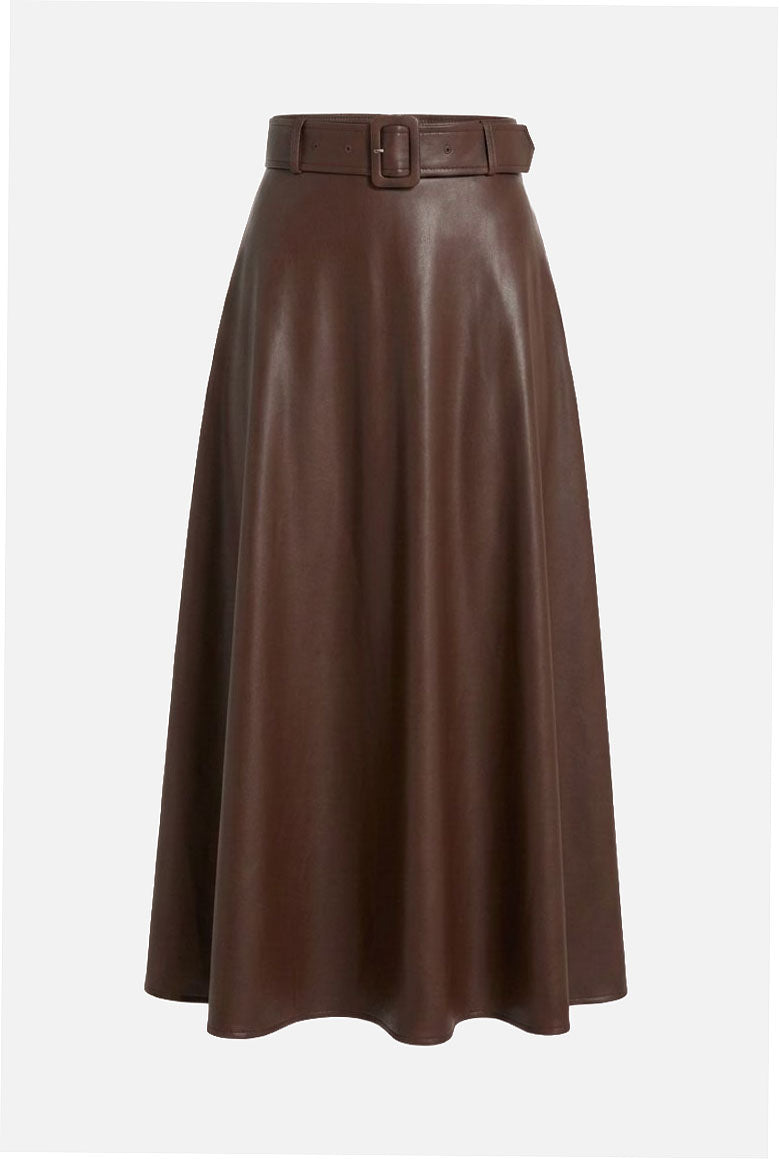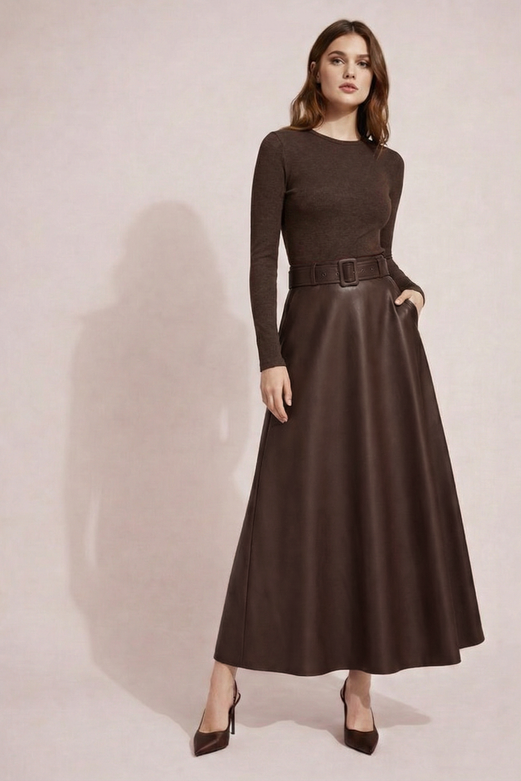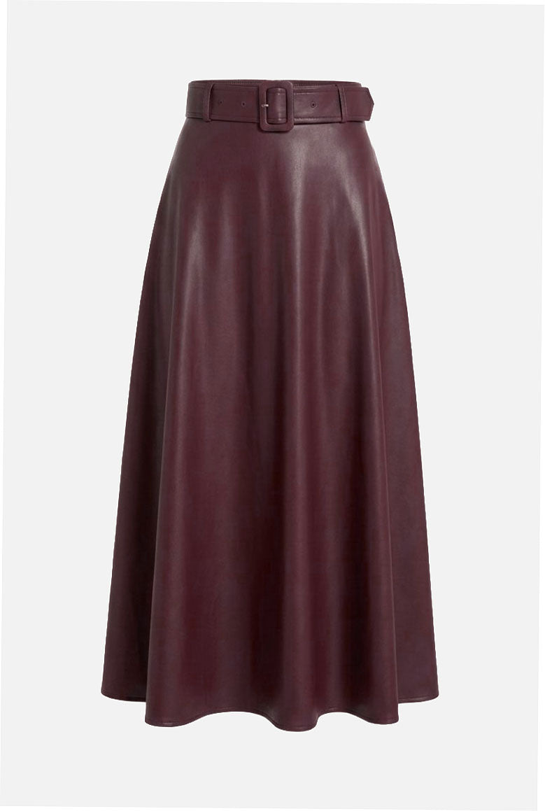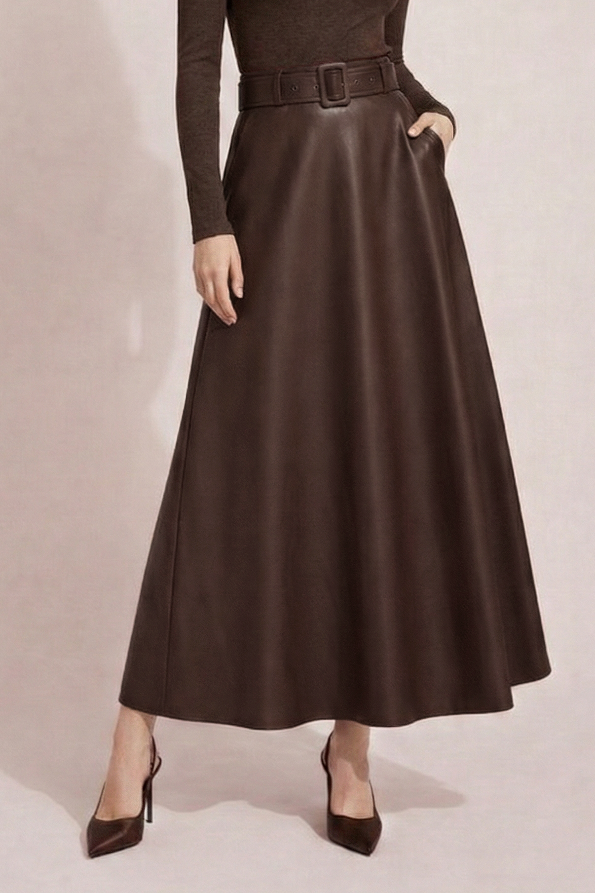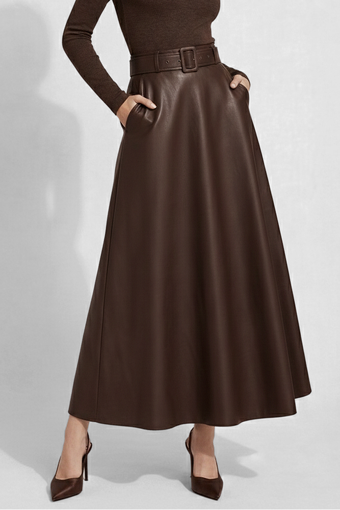 Audace,chic,versatile.La maxi gonna SCARLETT unisce il fascino rock dell'effetto pelle all'eleganza bon-ton del taglio svasato,facilissima da abbinare,l'alternativa perfetta ai colori scuri classici.Dotata di tasche laterali (perché la comodità è tutto!) e di una fibbia geometrica che definisce il punto vita, è pronta a diventare la protagonista del tuo guardaroba.
