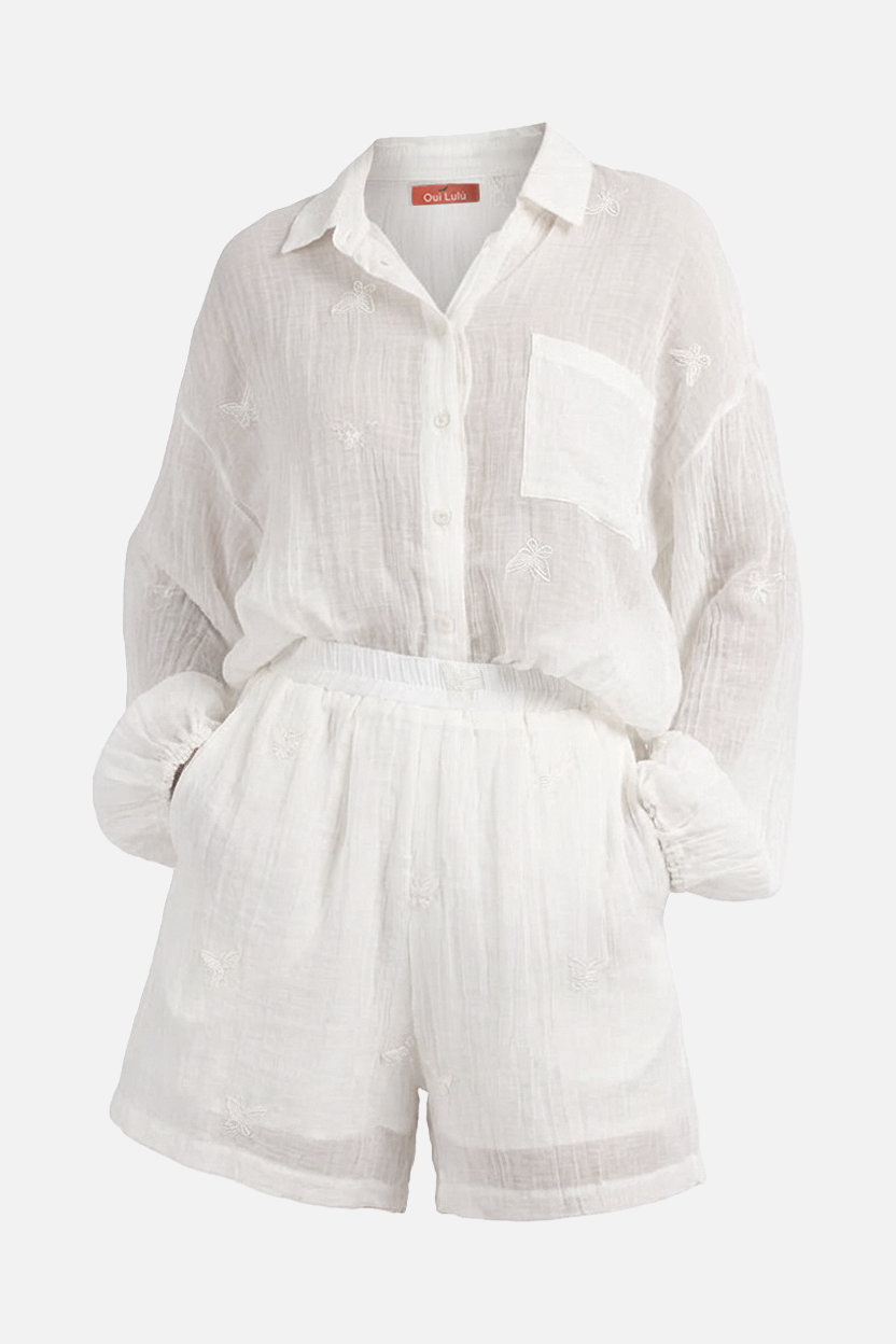 Set SIBILLE completo camicia e shorts con ricami farfalle
