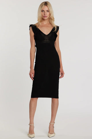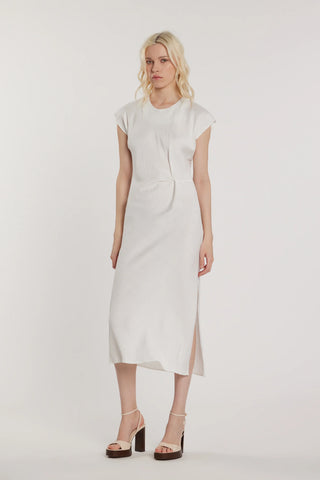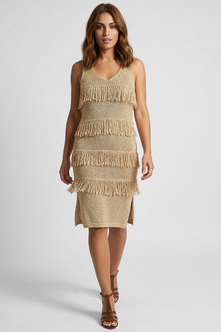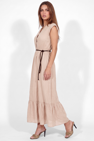 Abito lungo BISCUIT con balza e scollo con bottoncini
