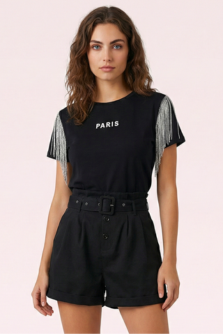 T-Shirt ARLETTI m/m colletto animalier con applicazioni gioiello